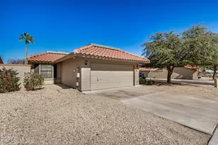 Welcome to this beautiful, turn-key home that's located on an oversized corner lot in the heart of Ahwatukee! Enter your secure yard through front gated access and enjoy the privacy of your property with tall walls, mature trees, and updated paver and turf landscaping (2022). Step into the home through an entry that produces soaring vaulted ceilings, a cozy fireplace, and an abundance of natural light. The open floor plan flows into the dining space/backyard and through the wraparound kitchen to make this home feel like home. The versatile floor plan also features two master bedroom ensuites, an indoor laundry room, and like-new tile (2021) throughout the home. The heavy lifting has been done and the list also includes newer HVAC (2020), newer slider (2020), and a newer flat roof (2023).