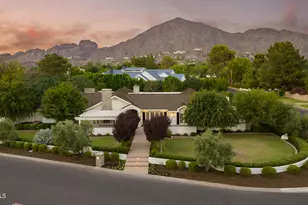 Remodeled in 2018, this stunning 6,100 sqft Arcadia Estate sits on just under an acre and is bursting with curb appeal with its lush landscaping and welcoming front porch pergola and classic red brick fireplace to greet guests. Thoughtfully designed, this split floor plan presents four spacious ensuite bedrooms including a primary suite designed with luxury and comfort in mind with his/her closets, a spa like bathroom featuring a stand alone tub, walk-in shower, double vanities and hand selected finishes throughout. The rest of the home features a formal living room, a grand family/game room with vaulted ceilings, a formal dining room, a library/office, and a bonus gym/storage room. The butlers pantry, with a temperature controlled wine room, connects the formal dining to an oversized eat-in kitchen which is a testament to traditional elegance boasting marble countertops, a large kitchen island, and top-of-the line appliances including a Wolf Range and a Sub-Zero refrigerator/freezer. A passthrough fireplace seamlessly connects the kitchen to the home's great room which includes a full bar and a stunning sliding door entrance to the backyard. Designed for both relaxation and entertainment, the backyard retreat features lush landscaping, a diving pool that can be both heated and cooled, a built-in BBQ, and an elegant covered ramada that houses an outdoor fireplace creating a cozy ambiance for evening conversations and gatherings. To top it off, all your family and friends can have fun enjoying the in-ground trampoline, bocce ball court and a professional batting cage. Walking distance to the coveted Hopi Elementary and in close proximity to Arcadia's most popular shopping and dining experiences, this is the perfect place to call home so you can live, work and play the Arcadia lifestyle.
