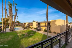 Great Central Phoenix 2BR two-story end unit with great outdoor patio, and easy access to community pool. Two larger bedrooms have lots of closet space. Pleasant interior with travertine and wood flooring. Kitchen has freshly painted cabinets, an electric cooktop, wall oven, granite tile counters, pantry and refrigerator. Full size washer & dryer included. Half bath and laundry downstairs. Bathroom has two sinks and granite counters. Amazing backyard (largest in the complex) has a large paver patio, mature shade trees and plenty of room to enjoy the BBQ. Reserved parking. Also, available furnished $1995.
