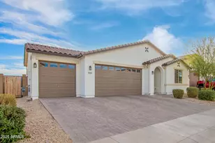 The search is finally over! Discover this stunning 5-bedroom 3 bath gem in Tuscano, complete with a 3-car garage and paver driveway. The captivating open layout features high ceilings, a soothing palette, recessed lighting, blinds and ceiling fans, durable tile flooring, and triple sliding doors that lead to the backyard for seamless indoor-outdoor flow. The gourmet kitchen comes with built-in double ovens, gas stove top, 52-inch extended cabinets and granite counters, abundant wood shaker cabinetry, SS appliances, a pantry, and an island with a breakfast bar. The primary bedroom offers an ensuite with double sinks, a lavish raindrop shower, and a walk-in closet. Welcome your guests to an On-Suite with separate bath and walk in closet for their privacy, and many other upgrades throughout. Outside, you'll find a well-sized backyard that includes a covered patio, Holiday lighting circuits in front and back, plumbed exterior gas line and ample space for crafting your dream outdoor oasis.