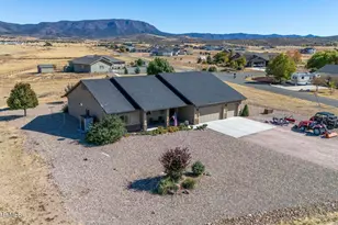 Welcome home to this warm and welcoming residence situated on 2 acres with expansive views in Prescott Prairie! 3 bedrooms plus den, 2 bathrooms, 3 car garage, 2,207 square feet. Spacious, open floor plan featuring a large family room with cozy stone hearth fireplace, perfect for chilly evenings. Delight in gathering with family and friends in the heart of the home - an open dining area and lovely kitchen with island/breakfast bar, pantry, and granite countertops. French doors lead to the primary suite, complete with another great fireplace, walk-in closet, and an ensuite bathroom with dual vanities, walk-in shower, and luxurious soaking tub. Relax and enjoy the views from either of your covered patios. Plenty of space for an RV, a workshop, or a corral. Schedule a showing today!