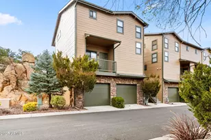 Freestanding townhome in a gated community with stunning Prescott city and boulder views. This 3-bed, 4-bath home includes a 2-bed, 2.5-bath main residence and a private 1-bed, 1-bath casita with separate entrance. Enjoy 3 elevated decks-one 12'x25'-surrounded by dramatic rock formations and open hillside. Inside: luxury vinyl floors, granite countertops, stainless steel appliances, gas cooktop with griddle, fireplace, and lighted media center. Freshly painted exterior and deck. High ceilings, rich textures, 2-car garage + guest parking. Walk to dining and shopping. Low-maintenance luxury close to dining and shopping!