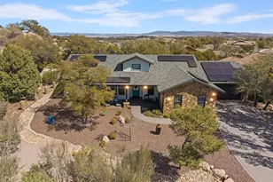 Discover luxury and nature in this stunning Enchanted Canyon home. This 3-bedroom + office, 2.5-bath retreat features an open great room with soaring ceilings and beautiful walnut wood floors. The gourmet kitchen boasts a spacious island, upgraded appliances, quartz countertops, and a farmhouse sink. The primary suite offers a spa-like bath with a freestanding soaker tub, a large walk-in closet, and quartz counters. Nestled among granite boulders and native Emery Oaks, this home enjoys San Francisco Peaks views, a hot tub oasis, and direct access to scenic trails and ancient petroglyphs. Upgrades include Anderson windows, porcelain tile baths, and a paver driveway. **Owned Solar System** With a level driveway and an oversized two-car garage, this is Prescott living at its finest!