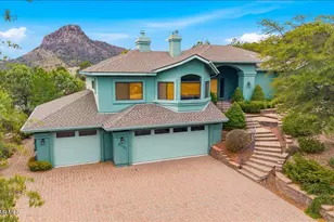 With your creativity this home can be elevated to the million dollar homes in the neighborhood. Perched to capture iconic views of Thumb Butte, this residence located in the covested Forest Trails is a rare blend of architectural presence, refined comfort, and design. The grand living room makes an unforgettable first impression, anchored by a dramatic raised brick fireplace and a wall of expansive windows that perfectly frame the majestic butte beyond. Natural light pours into the space, creating a warm yet sophisticated ambiance ideal for both intimate evenings and impressive entertaining.At the heart of the home, the oversized island kitchen is thoughtfully designed for both culinary excellence and gathering. Featuring abundant custom cabinetry, premium countertops, and a spacious view-filled dining area, this kitchen effortlessly balances beauty and functionality.The gracious primary suite is a private retreat, offering generous proportions, a substantial walk-in closet, and a superb designer bath with elevated finishes that evoke a spa-like experience.Downstairs, multiple bedrooms are complemented by a charming parlor and the potential for private in-law quarters -- ideal for multigenerational living or long-term guests. Exceptional lifestyle amenities include a temperature-controlled wine cellar, dedicated workout room, and abundant storage throughout.Outdoors, effortless, professionally designed landscaping enhances both the front and rear grounds, while the fenced backyard provides privacy and space to relax beneath Arizona skies. Completing the estate is an expansive, fully finished four-car attached garage -- perfect for collectors, hobbyists, or additional storage needs.This extraordinary home offers commanding views and exceptional versatility -- with just a few upgrades to bring it to your taste this will be a true Prescott luxury retreat.