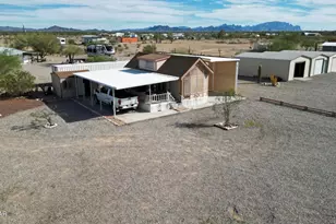 Beautiful one-bedroom, one-bath Park Model situated on a generous 1-acre lot in exclusive La Paz Valley, just 6 miles south of Quartzsite. This meticulously maintained property comes fully furnished and features a private well and septic system, along with three connected garages equipped with man doors. Over 2100sf of concrete and garages! Enjoy the convenience of a 13.5' RV carport, a 12' covered patio, and a 15' wide by 35' long covered parking area. Additionally, there's a 10' x 8' utility shed that includes a washer, making this an ideal retreat for those seeking comfort and ample storage in a serene setting.