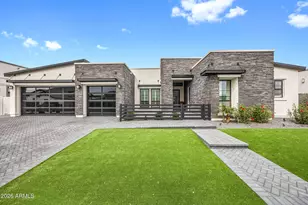 Welcome to an extraordinary contemporary residence nestled within the exclusive gated community of Bridle Ranch in Queen Creek. From the moment you arrive, the striking curb appeal commands attention -- a dramatic facade of stacked ledger stone, crisp stucco, and floor-to-ceiling glass garage doors set against a manicured artificial turf front yard with elegant paver hardscaping. A gated front courtyard with sleek horizontal iron railings leads to a private entry porch, creating an impressive arrival experience. Step through the custom glass-panel front door and into a world of refined, open-concept living. The expansive great room flows seamlessly from the chef's kitchen to the main living area, with soaring ceilings, recessed lighting, in-ceiling speakers throughout, and oversized porcelain tile flooring that reflects natural light pouring in through walls of black-framed sliding glass doors. The gourmet kitchen is nothing short of spectacular. At its heart sits a dramatic waterfall-edge island clad in book-matched Calacatta marble, accommodating seating for five and anchored by a matte black designer faucet with an undermount sink. The perimeter cabinetry is finished in a bold two-tone palette, matte black lowers and white high-gloss uppers, all illuminated by warm under-cabinet and toe-kick lighting. The Calacatta marble backsplash runs the full length of the cooking wall, providing a stunning backdrop for the professional-grade Wolf range with red-knob burners, multiple Wolf wall ovens, a built-in Wolf espresso/coffee system, and a Sub-Zero panel-ready refrigerator. A dedicated wet bar and butler's pantry features its own marble countertop, cabinetry, and a full-height glass-door Sub-Zero wine refrigerator -- perfect for the discerning entertainer. The great room is anchored by a full-height charcoal porcelain tile feature wall housing a wide-format linear electric fireplace and a large-screen television, with a dramatic oversized black ceiling fan overhead. Natural light and direct backyard access are provided by a wall of sliding glass doors that open to the covered outdoor living space, lined with mature privacy hedges and a lush artificial turf yard beyond. The main residence offers three spacious bedrooms, a dedicated private office, and a separate bonus room ideal as a game room, media room, or second family room, complete with carpet, in-ceiling speakers, and its own sliding glass door to the backyard. Every bedroom and living space has been thoughtfully designed with high-end finishes and smart home controls throughout. The primary suite is a true sanctuary, complete with its own linear fireplace set into a dramatic dark accent wall, a mounted TV, a statement ceiling fan, and direct backyard access through sliding glass doors overlooking the private, lush grounds. The spa-caliber primary bath features dual floating vanities with dark cabinetry and white quartz countertops, a freestanding soaking tub positioned center-stage, and a frameless glass-enclosed walk-in shower finished entirely in Calacatta marble with a rain head, arched niche, and multiple body sprays. A massive walk-in closet with custom built-in cabinetry, dual hanging sections, shoe shelving, and generous island storage completes this exceptional retreat. A standout feature of this property is the attached private casita, offering true flexibility for multi-generational living, extended guest accommodations, or potential rental income. Completely self-contained, the casita includes its own private exterior entrance, living room, bedroom, and full bathroom, providing total privacy and independence while remaining connected to the main home. The backyard is an entertainer's canvas already framed with tall privacy hedges and lush artificial turf across the generous 14,940 square foot lot, offering ample space for a custom pool, outdoor kitchen, or sport court build-out. Situated within the sought-after gated enclave of Bridle Ranch, this residence offer