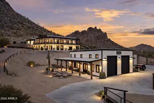Reintroduced with a refined exterior, this modern Western estate offers exceptional scale, privacy, and architectural presence set against the dramatic San Tan Mountains. Situated on ~4 acres, the cohesive compound spans over 9,000 sq ft of combined living and functional space, featuring a thoughtfully designed main residence, multiple guest accommodations, and an expansive RV garage and shop with hookups. The updated black-and-white palette delivers a clean, sophisticated aesthetic that complements the surrounding desert landscape. Expansive covered patios, wraparound balconies, and inviting outdoor spaces create a seamless indoor-outdoor lifestyle, ideal for entertaining and multi-generational living just minutes from Queen Creek amenities while offering a rare sense of seclusion! NO HOA restrictions this property delivers freedom rarely found this close to town. Bring your dreams! Secluded and serene, yet just 15 minutes from Queen Creek's dining, shopping, and amenities this is not just a home, it's an opportunity to own something truly exceptional.