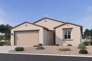 Welcome to the Marigold at Skyline! This 1,777 sq ft single-story home features 3 bedrooms, 2 bathrooms, a flexible den, and a 2-car garage with a stylish Spanish-style exterior. The Coastal Collection offers a clean, modern look with white cabinetry, quartz countertops, chrome cabinet pulls, and wood-look tile in all main areas. A 12' sliding glass door brings in natural light and opens to the backyard for seamless indoor-outdoor living. Enjoy 8' interior doors, blinds, stainless steel appliances, refrigerator, washer, dryer, and a soft water loop. Located in Skyline with amenities including a pool, splash pad, pickleball, basketball, volleyball, walking trails, fitness center, tot lots, and a community clubhouse with kitchen. Move-in ready!