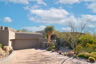 Rare, single level Hillside Villas home, nestled at the base of Pinnacle Peak in the desirable Desert Highlands Golf Course Community. This exceptional property features an expansive floor plan, beautifully redesigned with multiple sets of Panoramic Doors opening onto the 16th green, Troon Mountain and beyond. Superior craftsmanship seamlessly integrates high end finishes with comfort and purpose, providing an exceptional indoor/outdoor living experience. The heart of the home boasts expansive ceilings and an abundance of natural light. Wide open floor plan features multiple living and dining areas, gourmet kitchen with high-end appliances, custom cabinetry, multiple wine chillers and several oversized islands. The secluded primary retreat with fireplace is spacious, boasting its own separate patio with yet another fireplace steps away from the Pool and Spa. Luxurious primary bath thoughtfully designed with 2 separate vanities, large shower, soaking tub and 2 custom closets. The oversized 3-car garage with extensive cabinetry provides an amazing amount of storage space and the separate workshop is an added bonus! This home has been meticulously maintained and offers so many impressive features! Owners are here only 3 months a year, so very lightly lived in. Turn-key, Move-in Ready. Casita plans at 3rd car garage available for viewing. Close escrow today and play golf tomorrow on the Jack Nicklaus Signature Golf Course! This wonderful community offers an 18 hole putting course, Restaurants (Ventana & Jack's), Fitness center, heated lap pool, tennis, pickleball, bocce, walking trails, social clubs, and gated security.