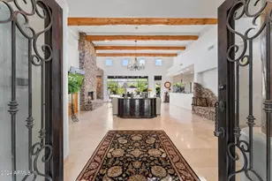 OUTSTANDING VALUE! Immediate membership at close of escrow! Situated on over 1.3 acres on a private cul-de-sac lot, offering the ultimate in privacy! Gated courtyard entry surrounded by the beautiful flora of the Sonoran Desert. Great room floorplan, private master suite, 3 guest bedrooms with ensuite baths, office, upstairs library/hobby room + bonus room with sweeping city light & mountain views. 24x24 travertine floors, wood beams, stacked stone & more. Gourmet kitchen with new top-of-the-line appliances, designed for the most discerning chef, features taj mahal quartzite countertops, knotty alder cabinets and adjacent breakfast room with fireplace. Private resort like backyard with beautiful mountain views as a backdrop, pebble tec pool and spa (see ''more'' remarks).. ... cooking station with new Napoleon gas grill, private side yard perfect for a garden or dog run. Exquisite landscape design by Trademark Landscaping. Desert Highlands, ranked as a top 100 club by Platinum Clubs of the World, offers world class amenities include a Jack Nicklaus championship golf course, 18-hole putting course, award winning clubhouse featuring Jack's Gastropub and Jack's Backyard, Highlands Racquet Club offering grass and clay tennis courts + pickleball courts, state of the art fitness center & more. A $150,000 membership fee is due from buyer at close of escrow (Membership fee $190,000 as of 2/1/2025).