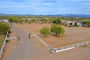 Properties like this don't come around often; especially with a private barn like this. Privately gated and beautifully remodeled, this exceptional 5-acre property offers the perfect blend of luxury living and equestrian living. Priced at $2,250,000, the property features a 4,377 sqft main residence plus an additional 500 sqft guest quarters located in the barn. Originally built in 2007 and extensively remodeled in 2021-2022, the home showcases stunning views, two spacious primary suites, and a gorgeous chef's kitchen designed for entertaining. The outdoor living experience is equally impressive with an infinity pool and spa with rock features, fully fenced acreage, private well, and a thoughtfully designed dog run. A circular paver driveway leads through the gated entrance to a charming courtyard-style entry, creating a welcoming arrival. Equestrian amenities include a custom stucco five-stall barn with runs, wash rack, grooming bays, tack room, laundry room, bathroom, and private guest quarters. This property seamlessly combines refined Arizona living with a turnkey horse setup offering privacy, functionality, and timeless style in one remarkable estate.