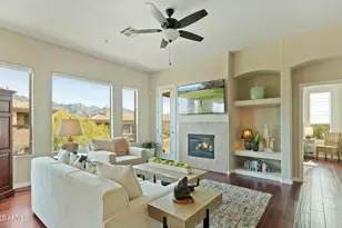 Experience the pinnacle of luxury living in this stunning 2-bedroom, 2-bathroom condo, perfectly perched to capture breathtaking Sonoran Mountain views. Step into an elegant open floor plan featuring sleek white cabinetry, gleaming granite countertops, a stylish breakfast bar, stainless steel appliances, recessed lighting, and a spacious pantry. The 9-foot ceilings, rich wood flooring, cozy fireplace, and expansive windows flood the space with natural light and showcase those mesmerizing mountain vistas. The primary suite is a true retreat, boasting a charming bay window, wood flooring, a ceiling fan, a spacious walk-in closet, a spa-like custom walk-in shower, a quartz double vanity, and private patio access. Enjoy the convenience of an attached 1-car with epoxy floors and storage Nestled in the prestigious gated community of Cachet in McDowell Mountain Ranch, you'll have access to upscale amenities including sparkling pools, lush parks, hiking and biking trails, tennis, golf, basketball, and pickleball courts, plus state-of-the-art workout facilities. This is more than a homeit's a lifestyle!
