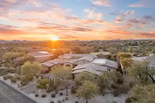 Positioned on Hole 5 of the Raptor Course at Grayhawk Golf Club, this custom estate in Serenity at Grayhawk represents a rare opportunity to own one of North Scottsdale's premier golf-front residences. This masterpiece offers 6,240 square feet of refined desert luxury with panoramic fairway views and a rare 5+car garage, an exceptional amenity even among North Scottsdale's elite properties. Behind the gates of one of Scottsdale's most prestigious golf communities, this 5 bedroom, 6.5 bath residence delivers architectural warmth and commanding presence. Soaring wood-beamed ceilings, handcrafted stone fireplaces, wide-plank flooring, and expansive glass walls frame unobstructed championship golf views while creating seamless indoor-outdoor living. The split floor plan is designed for privacy and elevated entertaining, featuring an executive office, flex room and multiple gathering spaces. At the center of the home, the chef's kitchen showcases a grand island, professional-grade Wolf Sub-Zero appliances, custom cabinetry, and a fully equipped butler's pantry, flowing effortlessly into the great room and formal dining areas. Retracting glass walls reveal a resort-caliber backyard retreat set against the manicured fairways of the Raptor Course. Enjoy Arizona sunsets from the covered patio fireplace lounge, entertain at the full indoor-outdoor bar, unwind in the heated pool and spa, or host competitive play on the private sport court. The setting delivers privacy while embracing the prestige of championship golf living. The primary suite offers a private sanctuary overlooking the course, complete with a spa-inspired bath, expansive custom closets, and direct access to the outdoor living areas. Each additional bedroom features an en-suite bath, ideal for guests or multigenerational living. A substantial laundry suite with dual washer and dryer configuration, extensive storage throughout, and the highly sought-after 5+ car garage provide both luxury and functionality. Whether for collectors, golf carts, or additional recreational vehicles, this garage capacity is a rare advantage in Scottsdale luxury real estate. Serenity at Grayhawk is known for elevated custom lots, guard-gated security, and proximity to the award-winning Talon and Raptor golf courses. Residents enjoy scenic walking and biking trails, tennis and pickleball courts, community parks, and quick access to Scottsdale Quarter, Kierland Commons, DC Ranch Marketplace, Pinnacle Peak hiking, and Loop 101 connectivity. For buyers seeking a golf course estate, a Grayhawk trophy property on the Raptor Course, or a North Scottsdale luxury entertainer's compound, this property stands among the most compelling offerings in today's high-end market.