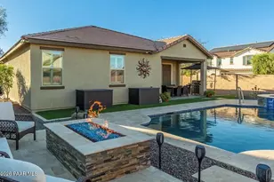 Located in the highly desirable Desert Oasis community, this beautifully upgraded home offers a spacious Great Room layout that flows seamlessly into a thoughtfully designed kitchen--complete with a large island, quartz countertops, pendant lighting, and a walk-in pantry.From the moment you walk in, you'll notice the upgrades that matter: wood plank tile flooring, plantation shutters, and 8' interior doors throughout--features that elevate the home without lifting a finger.The split floor plan offers two bedrooms and a full bath at the front of the home, while the private primary suite is tucked away in the back, featuring a walk-in closet, dual sinks, and a spacious walk-in shower.And then there's the backyard... where this home truly sets itself apart.A large sliding glass door opens to a fully finished outdoor space with a heated pool and spa, stone water feature, travertine patios and walkways, REAL GRASS for your Furry Friends and a built-in gas firepit--everything you'd hope for, already completed and ready to enjoy.In a market full of brand-new construction, this home offers something even better:the upgrades are done, the dust has settled, and it's ready for you from day one.Stay tuned--homes like this don't stay available for long.