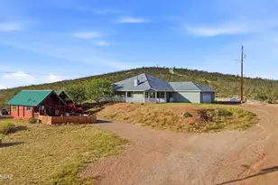 Perched high above historic Tombstone, this half-acre hilltop hideout offers panoramic 360 views. Built in 2019, the 2,180 sq ft main home features 2 beds, 2 baths, granite counters, high ceilings, dual-pane windows, a cozy fireplace, and a surround-covered porch--perfect for quiet sunset reflections. The oversized garage is ready for hobbies or projects. An additional outbuilding is perfect for gear and storage. The 394 sq ft guest cabin or bunkhouse adds 1 bed and 1 bath, ideal for company, outlaws and cowpokes passing through the Old West. Total 2,574 sq ft. Take a short 5 minute amble on down to the boardwalks and visit towns folk, shops, stage line and saloons of the legendary world-famous and historic streets of Tombstone!