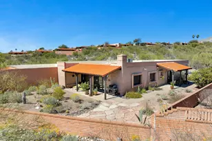 Elegant Fairfield Catalina Foothills Territorial home on a larger lot landscaped with lush, low maitenance Sonoran Desert cacti and shrubs. 2 covered patios and a large flagstone entertaining area with impressive Santa Catalina Mountains views. Interior features recently laid 24'' x 24'' tiled floors, fresh paint, motorized window treatments, a beehive gas fireplace, stainless steel appliances with plenty of open living and dining space including a breakfast nook off the kitchen. The substantial master bedroom has a large walk-in closet and views of the back garden. Guest bedrooom is king-bed-sized with attached full bath. Skylights throughout. Ample space in the garage for 2 cars with built in storage.