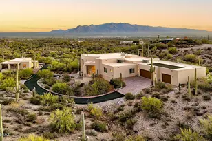 Stunning 2020 Southwestern contemporary on a glorious, saguaro-studded, 3.31-acre lot in the Tucson Mountains near Sweetwater Dr. and Camino De Oeste with sweeping Tucson city, mountain and desert views. Featured are a separate guest home (1,109 square feet) and the main house with 3,028 sq. ft., 3 bedrooms, 2 1/2 baths, no interior steps, great room/dining area with unobstructed city views, remote control gas fireplace with hand carved oak mantel and built-in sound system in great room, patio and garage. Chef's kitchen has oversized center island with prep sink, granite counters, designer stainless steel appliances, counter level wine/beverage fridge, breakfast area and generous pantry. Gracious 14' X 15' primary suite has over-sized walk-in closet, dual vanities, soaking tub and access
