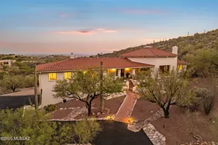 Welcome to Villa Puesta del Sol, a timeless residence of understated elegance nestled in the prestigious, guard-gated community of Finisterra on a private 2+acre view lot. Designed and built by renowned Tucson builder Mike Wachs, this exceptional home blends classic craftsmanship with luxurious modern upgrades, breathtaking city & Catalina Mountain views and embodies the sought-after Catalina Foothills Lifestyle. As you approach, the long private tree lined driveway will lead you to the front entry, beautifully landscaped with the Catalina Mountains towering above and at your fingertips. Enter through the hand carved front door to a grand living room that was designed for entertaining and definitely has a ''Wow'' factor. Walls of custom bookcases frame the beautiful wood burning fireplace A wood clad 20' high ceiling adds warmth to the enormous room while a large picture window brings nature in. A custom walk-up wine bar on the other side of the living room is guaranteed to make holidays and special occasions with family so much more enjoyable. At the heart of the home is a spectacular $200,000+ custom kitchen curated by Dorado Designs, Tucson's premier kitchen design firm. Outfitted with top-of-the-line commercial grade Wolf, Viking, and Sub-Zero appliances, this culinary space balances form and function with abundant integrated storage, refined finishes, and commanding city views from the kitchen sink. The adjacent formal and casual dining areas overlook the dramatic city skyline and backyard. The luxurious primary bedroom suite is larger than some starter homes and features an enormous walk-in closet big enough to share with your partner or spouse, a spa like bathroom w/steam shower & Jacuzzi tub, double vanities, a private rear patio with impressive city views, and an adjacent home office with private entrance. The split bedroom floorplan is ideal with three en-suite bedrooms all with new carpet & updated bathrooms, a large powder room & a bonus rec room at the end of the hall with pocket doors to hide toys from sight or block the sound of little angels fighting. Downstairs, you will find a car enthusiast dream garage large enough for 4 -6 cars or a small RV or boat. Also downstairs, is a climate-controlled flex space, ideal for a wine cellar, workshop, storage, recording studio or gym. The backyard is a blank canvas, ready to accommodate a pool, sport court, gardens, or outdoor entertaining spaces tailored to your lifestyle. This solid masonry home has been meticulously maintained and thoughtfully updated recently with a new tile roof (2024), 2 new heat pumps, fresh interior and exterior paint (2025), new carpeting (2025), and a newly paved driveway (2025). Don't miss this rare opportunity to own one of Finisterra's finest properties, where luxury, location, and lifestyle converge. Residents of Finisterra enjoy exclusive access to community amenities including a heated Olympic lap pool, tennis and pickleball courts, clubhouse for private events, and 24/7 guarded gate access. Ventana Canyon Country Club & Lowes Ventana Canyon Resort are a short 5 min drive away and offer golf, tennis, social & spa memberships.