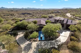 In the prestigious gated enclave of Monte Vista Ranch, this estate embodies refined desert luxury and impeccable craftsmanship. Designed for both grand-scale entertaining and effortless everyday living, the home unfolds with soaring spaces, retractable walls of glass, and a seamless flow that merges indoors with the breathtaking outdoors. The chef's kitchen is a culinary masterpiece, outfitted with professional-grade amenities and crafted to anchor gatherings large or small. The primary wing is a private retreat, where a romantic suite with Canterra fireplace and private patio opens to a spa-like bath with indulgent finishes and a dressing room of enviable proportions. Guest accommodations are equally refined, with multiple...CONTINUE READING... ....ensuite bedrooms and a dedicated media room. Outdoors, the residence transforms into a resort sanctuary. A striking negative-edge pool and spa spill into the desert horizon, framed by dramatic fire pots, cascading water features, and a winding lazy river tucked among natural boulders. Entertain under the ramada with a fully appointed outdoor kitchen, linger by one of several fireplaces, or ascend the rooftop viewing tower to take in panoramic sunsets and starlit skies. For the collector, the estate offers a climate-controlled garage with room for eight vehicles plus a drive-through RV stall, making it as practical as it is indulgent. Every detail of this residence reflects timeless elegance, a harmony of design, and a lifestyle of unparalleled distinction.