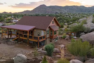 Architectural builder's model home turned primary residence This exceptional home in Yarnell, Arizona, sits on a premium elevated view lot with unmatched panoramic views, plus an optional adjacent lot for sale for expanded potential. The backyard is truly a natural wonderland. Massive granite boulders rise into the sky, creating a private outdoor oasis unlike anything else on the market. Complete with ambient string lighting, multiple entertaining areas, and even a pool tucked right into the rock formations. A hidden passageway between the boulders creates a magical cave-like corridor that feels worlds away. Inside, 3 panel sliding glass doors and large windows bring in natural light and connect the home to the outdoors. Highlights include, Grand breams, custom metal ceilings, a designer chef's kitchen with massive stone island, luxurious bathrooms (including Granite view 2-person tub and convertible stream shower), built-in gun safe closet, loft, and a finished two car garage. Built for efficiency and durability with ICF block walls that are water, fire, and bug resistant, spray foam insulation, interior and exterior surround sound, security cameras, and premium hardwood and tile flooring. Located at 4800 feet, Yarnell offers four seasons and crisp mountain air, expansive decks captures dramatic sunsets and boulder mountain views, making this a rare luxury retreat, ideal as a primary home, a second home, or a potential short-term rental.