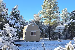 PRIME 5-ACRE PROPERTY in a PEACEFUL NEIGHBORHOOD!! Ideal for builders or RV getaway. PRICED BELOW RECENT SOLD COMPARABLES! Nearly new 16' X 12' TUFF SHED with partial loft. Large, level CLEARED BUILDING SITE nested among mature trees. 2nd building site has waterline buried to a freeze-proof freshwater hydrant. Enjoy running water from the 420 FOOT DEEP, PRIVATELY-OWNED, CASED WELL that has SOLAR PUMP & PANEL installed! Plenty of room to build a large garage / workshop or set a manufactured home. APS electric is available. HIGH SPEED FIBER OPTIC INTERNET in the roadway. Occasional seasonal wash routed neatly thru 3-ft culvert under the driveway. 911 street address assigned by Gila County when a building permit is issued. With NO RETRICTIONS, there's a lot of flexiblity!