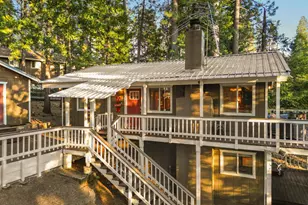 If a treehouse and a mountain chalet had a very stylish love child, this would be it! Tucked along a peaceful loop in Meadowmont, just up the street from Sierra Pacific Industries land, this elevated retreat perches among the pines on 0.41 acres, giving you front-row seats to rustling branches, golden light, and the occasional deer cameo. Inside, vaulted open-beam ceilings and sweeping picture windows bring the forest in, while a crackling wood-burning fireplace sets the mood for snow days and slow mornings. The open living space spills effortlessly into a remodeled kitchen with granite counters, propane range, and breakfast bar seating - and yes, scones bake better at this elevation. Two bedrooms and a full bath rest on the main level, while downstairs offers a separate-entry guest suite with full bath and laundry, perfect for visitors, a third bedroom option, or a savvy income-producing setup. Dual decks let you sip coffee in the treetops or toast under a sky full of stars, and with a metal roof, updated septic tank (2015), central heat, durable simulated wood flooring, and a storage shed for all your seasonal toys, this home balances charm with practicality. Not a fan of bears redecorating your yard at night? This home comes complete with a metal bear box - keeping furry, unqualified designers out of business. Sold fully furnished and already thriving as a successful vacation rental - 30 minutes to Bear Valley and Lake Alpine, 10 to Big Trees State Park, and 20 to Murphys' wine country - it's your basecamp for adventure. The wildlife union voted unanimously - you belong here. Deer, roll out the 'Welcome' mat.
