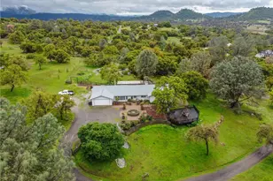 Nestled in Auberry's foothills, this stunning 10+ acre property blends comfort, functionality, and natural beauty-less than 20 miles from Shaver and Millerton Lakes. The 4-bed, 3-bath home features a well-planned layout, with a guest suite on one end and two bedrooms sharing a Jack-and-Jill bath. The primary suite offers dual walk-in closets, dual sinks, and a step-in shower. At the heart of the home, the updated kitchen boasts custom cabinets, leathered granite, and newer appliances. A spacious living room with a fireplace provides a cozy retreat, while the laundry room doubles as a pantry. Enjoy breathtaking views from the front deck, where a porch swing overlooks a peaceful pond. The backyard is ideal for entertaining with a pergola-shaded patio and vibrant rose bushes. An 8' x 40' sea train workshop with three-phase power and swamp cooling is perfect for projects. The land backs up to 380+ acres of grazing property, with meadow areas and ponding basins for water storage. A well-maintained sheep motel with a tack room adds versatility. This private retreat offers stunning scenery, practical amenities, and easy access to year-round outdoor recreation.