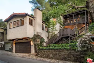 Positioned on a tranquil cul-de-sac just off Benedict Canyon Drive in the coveted Beverly Hills Post Office neighborhood, this enchanting retreat is a lovely '20s treasure. Until recent years, it was cherished by one family for nearly half a century. The home's approximately 2,235 square feet of meticulously renovated rooms, some restored to the studs, are filled with wood details, arched doorways, leaded glass windows, vintage style tiles and wrought iron accents. Many spaces open to lush canyon view decks and patios. Set under striking multi-beamed ceilings, the living room and step-up dining room are highlighted by a vintage style chimney fireplace. Multi-paned windows and doors fill the spaces with light and open to a skylit view patio. Off the dining room, a cozy den is the ideal place for TV and conversation. The fully remodeled kitchen features ceramic floors and back-splash, Franke farmhouse sink, luxe fixtures, gleaming stainless appliances accented with reclaimed wood and under-cabinet lighting. The window-wrapped ensuite primary features a vaulted wood ceiling, leafy views, tiled fireplace, spacious walk-in closet and airy bath. The second bedroom boasts a vaulted, beamed wood ceiling, and a charming window seat. A third bedroom, currently an office, opens to a tree-wrapped redwood deck/patio. The shared bath features Rohl/Riu brushed gold shower and sink fixtures, and a Calacatta marble top vanity. A fourth room, serving as a bedroom, offers multiple options. The property's enchanting outdoor environment has been enhanced by all-new wooden decks, stairs and patio. The upper deck off the office has been enlarged and restored. Tucked beneath is an outdoor room with a glorious river rock fireplace. Other key upgrades include a comprehensive roof refurbishment, upper-level fireplace relining and restoration, new ADT security system, and rear fire deterrent sprinkler system. The home includes a sizable two-car garage with extra height and storage, plus additional front parking. Close to downtown Beverly Hills, Westwood, and the Valley ... yet a world away, ... this timeless home is an incomparable find.