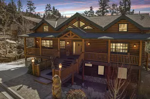 Beautiful custom log home in coveted Castle Glen, set on a quiet cul-de-sac and backing to protected Eagle Preserve acreage for privacy and a true mountain setting. Enjoy easy year-round access along with ski slope and expansive mountain views, plus a peek of the lake from the covered front deck. Designed for both comfort and entertaining, this home features an open floor plan with a dramatic great room anchored by a towering rock fireplace. The lower level offers a spacious secondary common area ideal for a family room, game room, or media space. Upstairs are two generous primary suites, providing flexible accommodations for full-time living or guests. With 4 bedrooms, 5 bathrooms (including 2 half baths), this thoughtfully designed home offers space and versatility. Built and owned by the original builder, with original blueprints available at the home. A rare opportunity to own a high-quality log home in one of Big Bear's most sought-after neighborhoods, surrounded by forested acreage and mountain scenery.