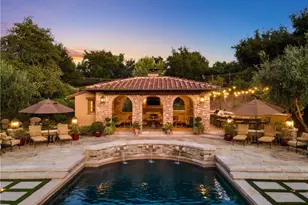 Casa della Grazia, a Tuscan-inspired masterpiece in the prestigious guard-gated Estates of The Oaks in Calabasas-the pinnacle of luxury living in Los Angeles. This custom estate, located on a serene cul-de-sac, spans nearly 10,000 square feet on 1.14 acres of lush, usable land. Featuring 6 bedrooms and 8.5 baths, it is designed for ultimate privacy and comfort, showcasing exquisite stone walls, soaring wood-beamed ceilings, and imported terra cotta tile flooring from France. Among the estate's many features is a newly updated, state-of-the-art movie theater, equipped with the latest technology for an unparalleled cinematic experience. The home also offers an elegant library with two-story ceilings, an oversized gym, a massive bonus/game room, and a private guest wing with a bedroom, full bath, and living room. The gourmet kitchen, complete with top-of-the-line appliances, flows seamlessly into the family room, ideal for entertaining. Additionally, the estate is equipped with a cutting-edge Savant home automation system, providing seamless control of the audio/video systems in the family room, game room, movie theater, and pool house. With built-in control pads, iPads, and remote access via smartphone, convenience is always at your fingertips. The system also includes a karaoke setup in the family room, game room, and pool house, along with an audio system that spans 11 zones-6 indoors and 5 outdoors-creating the perfect atmosphere throughout the home. The newly remodeled resort-style grounds feature a custom Pebble Tec pool and spa, Sport court, expansive stone patios, manicured lawns, an outdoor kitchen and BBQ center, and a stunning covered cabana with a fireplace and ¾ bath. The estate also boasts His and Hers garages for ultimate convenience.This extraordinary 6-bedroom, 8.5-bath property is filled with high-end designer finishes and unique character at every turn. An absolute must-see for those seeking unmatched elegance and exclusivity in Calabasas.