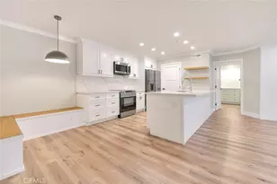 Beautifully upgraded & completely remodeled 2 bedroom/2 bath condo situated in the community of Triana at Corona Ranch. Truly turnkey and shows like a model, done with a contemporary flair! A fantastic floorplan greets you with an open entertaining space that boasts a gorgeous remodeled kitchen and luxury vinyl plank flooring throughout with exception of the bathroom tub and shower areas which have upgraded flooring as well (ceramic tile). Light and bright white cabinetry, elegant quartz counter-tops, stainless appliances, decorative floating shelves, recessed lighting plus built-in nook seating for dining. Great counter top space to prepare and serve plus generous storage. Other interior upgrades include: new doors & hardware, shiplap accents in almost every room and crown molding, all chosen with a designers careful attention to detail. Both bedrooms feature on-suite bathrooms and walk in closets! Primary bathroom boasts new vanity, counters, shiplap accenting, mirror, flooring as well as upgraded tile in the shower/tub combo. The guest bath also features a new vanity, decorative mirror & shiplap accenting, a sizeable walk in shower, new flooring and more! Both bedrooms and the living room all have sliding doors that lead to the outside patio. This additional exterior space is great for outdoor relaxation or patio dining. There is a convenient laundry closet inside, located off the kitchen. No outside trips for laundry needs! The unit has access to a one car garage as well as one permitted parking space. The gated community of Triana has a community pool, spa, barbecue and dining tables for the residents to enjoy. HOA dues also include water and trash utility. Nearby to local parks, McKinley Elementary, Walmart Super-Center, Costco, Home Depot, Ranch 99 and more! This property is sure to impress!