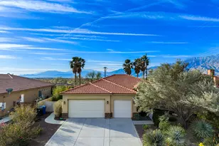 Stunning Mediterranean-Style Home with Breathtaking Mountain Views & Solar! Discover this exquisite 4-bedroom, 3-bathroom former model home in the highly desirable Rolling Hills Drive neighborhood, just minutes from Palm Springs, CA, and the world-renowned mineral hot springs of Desert Hot Springs! Nestled on a premium corner lot adjacent to Mission Lakes Country Club, this home offers 2,544 sq. ft. of luxurious single-story living--without the burden of an HOA. Step inside to soaring high ceilings, tall doors, custom recessed lighting, and ceiling fans, creating an open and airy ambiance. The expansive chef's kitchen features stainless steel appliances, a walk-in pantry, ample storage, a peninsula-style island, and granite countertops--perfect for entertaining. Flow seamlessly into the spacious great room, complete with a natural gas fireplace, and a formal dining area. The primary suite is a private retreat, boasting an expanded walk-in closet and a spa-like ensuite bathroom with a granite dual-sink vanity, glass-enclosed shower, Roman tub, and separate WC. Three additional bedrooms offer comfort and style, each with ceiling fans and mirrored closet doors, plus two well-appointed full baths. Sliding 8' patio doors in the great room and primary suite flood the home with natural light and open to an entertainer's dream backyard. Enjoy a built-in outdoor kitchen with a custom mosaic-tiled countertop and a large natural gas BBQ, alongside a custom saltwater pool, raised spa, and artificial turf area. The lush desert landscaping, enhanced by solar accent lighting and a Rainbird automatic watering system, creates a serene outdoor oasis. This home also features solar panels, providing significant savings on your electric bill!Additional highlights include a 3-car garage, gated side yard patio with RV parking & hookups, and a bonus relaxation area with Tuscany-style plantings. Homes in this sought-after location rarely come on the market--don't miss your opportunity to own this desert gem! Schedule your private tour today.