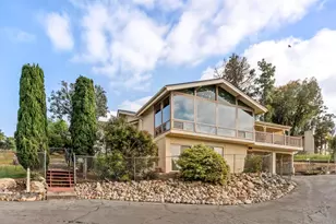 This dramatic wood and glass design offers single level living high above the treetops and rooftops below. The panoramic view overlooks the valley and to majestic El Capitan mountain beyond. The sunrises are spectacular here! Once inside you will be greeted by a groovy 70's vibe with a formal entry way leading to the breathtaking Living Room and adjoining deck, both focused on that endless view. The deck is the perfect place to be for dining alresco or relaxing in the fresh air. The pass through kitchen window makes grillin' and chillin' easy here! All topped off with solar! Best value in the valley! Come and make this your own! Take this from fixer to FABULOUS!