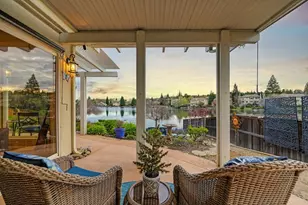 Embrace the lifestyle of a permanent vacation with this exceptional single-story waterfront solar home in the exclusive gated Bridlewood Canyon Community. Upon entry, you're immediately captivated by the sweeping water views that enhance the 2,816 sq ft of refined living space. This residence offers 4 to 5 bedrooms, 3 full bathrooms, a formal dining room, indoor laundry room, and a spacious great room complete with vaulted ceilings and a warm fireplace. Every window frames breathtaking views, providing a constant connection to the tranquil surroundings. The property spans .35 acres, featuring an incredible outdoor space perfect for lake activities like paddle boarding. The extended covered patios are ideal for enjoying the outdoors in any weather, and the meticulously landscaped grounds are sure to delight gardening enthusiasts. Enjoy an array of community amenities, such as a BBQ area, clubhouse, pool, recreational facilities, tennis courts, and pickleball. This home offers the perfect blend of luxury and leisure, making every day feel like a getaway.