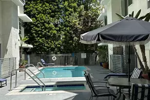 Welcome to the highly sought-after Encino Marquee! Exceptional townhome with 2 entrances on 2 separate floors. 2 bedrooms 2.5 bathrooms. Hardwood floors. Central air/heat. Large remodeled kitchen with bar top space for sitting. Separate dining room. Fireplace in living room. Washer & Dryer inside located in the kitchen. Nice mountain views from balcony and both bedrooms. Community pool & spa. 2 side by side parking spaces.