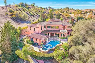 Seize the opportunity to own a stunning Mediterranean-inspired residence in one of North County San Diego's most exclusive enclaves. Designed by the acclaimed architect Paul Olson, this remarkable estate seamlessly combines old-world charm with modern luxury across a sprawling 6.17 acres. Step inside this expansive 4-bedroom haven, where the luxurious main residence spans 6,050 square feet and showcases custom finishes and meticulous craftsmanship throughout. As you enter the grand living areas, you'll be captivated by soaring ceilings adorned with exquisite chandeliers. Solid mahogany doors and elegant marble fireplaces enhance the home's sophisticated atmosphere. Additional features include a well-appointed wine cellar, a private office, and an exquisite dining room. The separate entertaining area boasts its own built-in pizza oven and ample counter space, making it perfect for hosting gatherings. Relish in picturesque views of the magnificent pool and jacuzzi, complemented by a tranquil cascading waterfall-ideal for both relaxation and entertaining. An attached 4-car garage ensures convenience and generous storage. Guests will appreciate their own sanctuary in the detached 1,023 sq. ft. guest house, featuring 1bedrooms, 1 bathroom, dining room, kitchen and living room, ensuring a comfortable and private stay. Car enthusiasts will love the spacious detached 2,200 sq. ft. garage, accommodating up to 8 vehicles-perfect for storing your prized collection and pursuing hobbies. This property offers a rare blend of luxury, space, and natural beauty, making it a true sanctuary in North County San Diego.
