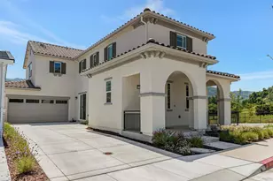 Beautiful Gilroy home located in a picturesque setting near the foothills. Built in 2024, this gorgeous property features a premium corner lot with no neighbors to the right and to the rear. Bright & modern open floor plan with 1 bed and 1 bath downstairs & 3 beds and 2 baths upstairs. Beautiful laminate flooring downstairs, tile flooring in the bathrooms, premium carpeting on the stairs and all the bedrooms. Stylish kitchen with sleek gray cabinets, white quartz counters, stainless steel Samsung appliances, island with sink, tile backsplash, and separate pantry. Master bedroom suite with a large bathroom and walk-in closet. Separate laundry room with washer & dryer. Recessed lighting throughout. Attached 2 car garage with EV charger. Long driveway that fits 3 regular sized vehicles. Double pane windows, leased solar panels, tankless water heater, and dual-zone heating & AC make this home super efficient. Property shows like a model home with beautiful panoramic views from every room. Brand new community located in the highly desirable West Side of Gilroy. There is a guest parking area and playground. Gilroy Golf Course located right across the street. Property is located near schools, shopping, Gilroy Gardens Family Theme Park, and the famous Gilroy Outlets.