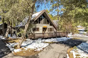 Nestled on a serene 8,000+ sq ft lot with breathtaking forest and mountain views, this 1,726 sq ft A-frame chateau-style cabin blends modern upgrades with rustic charm. Designed for both relaxation and entertaining, this home features a brand-new HVAC system, water heater, upgraded electrical sub-panel, and a luxurious hot tub-perfect for unwinding under the stars. Step inside to an inviting great room with soaring cathedral ceilings, open-beamed wood ceilings, and a striking rustic stone fireplace. Expansive windows flood the space with natural light, while a wraparound loft offers stunning treetop views. The open-concept kitchen has been upgraded with high-end appliances, making it both stylish and functional. Fresh paint and new carpeting throughout enhance the cozy yet elegant feel of the home. This thoughtfully designed retreat features two spacious primary suites, each with beautifully crafted walk-in showers and custom granite tile. All three bathrooms showcase elegant granite finishes, adding a touch of luxury. The expansive 1,000+ sq ft wraparound deck is perfect for entertaining or simply soaking in the peaceful surroundings. The detached garage conversion adds 500 sq ft of flexible space, including a spacious game room or potential workshop, plus a tucked-away office ideal for remote work or extra storage. A circular driveway and additional parking areas provide easy access for guests. Located in a charming, forested neighborhood, this home offers the perfect blend of privacy and community. Surrounded by towering pines and scenic hiking trails, it's a dream retreat for nature lovers and outdoor enthusiasts alike. Whether you're looking for a full-time mountain sanctuary or a weekend getaway, this move-in-ready cabin is the perfect blend of comfort, charm, and modern convenience. Don't miss this rare opportunity to own a piece of mountain paradise!