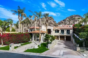 Welcome to Monte Sereno!Your very own Desert Paradise. Situated in the prestigious gated enclave of Monte Sereno Estates, this sprawling 4bed/5bath split-level estate offers both Mediterranean charm and Ultimate privacy. Custom built along side foothills of the Santa Rosa Mountains and spanning over to 5300 sqft add to the unparalleled beauty of this truly one-of-a-kind property. Generously sized observation deck offering breathtaking views from all round. Bonus large balcony, newly updated off primary suite and just steps from cliffside private hot tub/spa with custom waterfalls cascading from the mountain. Resort style front courtyard provides the ultimate playground complete with Pebble Tec Pool, BBQ cook center, serving bar all with continued panoramic views of the Greater Palm Springs Area. Elevated formal living room features vaulted cathedral ceilings complimented with stack-stone fireplace with French Doors to balcony. Chefs kitchen designed for the culinary artist complete with granite slab, Top of the line appliances including Sub-Zero refrigerator, 5 burner built in range, double oven and huge walk-in pantry. Travertine floors throughout. Formal dining room w/ built-in buffet. Family room is an entertainers delight with additional stack-stone fireplace and built-in entertainment center and bar. Trophy central valley location with easy access to shopping, restaurants and nightlife. Home is offered turnkey furnished and Move-In Ready! Low Association Fees / Discounted Golf / Indian Wells Benefit Program.