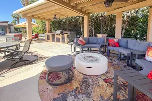 Welcome to Lot 110 at Outdoor Resort Indio, a cozy and private RV lot ideally located close to the clubhouse while still offering a peaceful retreat.The L-shaped Alumawood pergola features a solid roof, three heaters with dual controls and heating elements, and two ceiling fans, creating a comfortable outdoor living space throughout the desert season. A built-in entertainment center with TV enhances the outdoor experience, making it perfect for relaxing or hosting friends.The medium-sized kitchen is well-equipped with a cooktop, new BBQ, under-counter refrigerator, garbage disposal, and hot water, providing everything needed for outdoor cooking and entertaining. The lot also includes a round dining table with four chairs, a front seating area with table, umbrella, and two chairs, plus additional outdoor furniture surrounding a welcoming fire pit with six semi-circle chairs.Landscaping and pavers extend into the back of the lot, where you'll also find a private pet area and two storage boxes for added convenience.Lot 110 offers a wonderful blend of comfort, privacy, and proximity -- just a short stroll to the clubhouse while maintaining your own quiet space to enjoy the resort lifestyle. Outdoor Resort Indio is a class A only motorcoach resort.