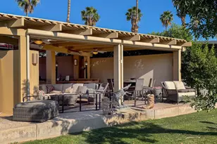 Outdoor Resort Indio is a Class A Motorcoach resort. Welcome to Lot 46 at Outdoor Resort Indio, a luxury golf course view lot designed for both entertaining and relaxed desert living. With sweeping fairway views and beautiful sunsets, this property combines scenery, comfort, and functionality in one of the most desirable Class A motorcoach resort settings in the Coachella Valley. The Cool Top concrete RV pad enhances comfort underfoot, while the location offers easy access and convenience within the resort.The large outdoor kitchen is truly the centerpiece, featuring a dishwasher, hot water, garbage disposal, refrigerator, oven, electric cooktop, gas burner, wine cooler, and built-in BBQ -- all surrounded by extensive stainless steel storage. The L-shaped pergola includes a section built just two years ago and a custom entertainment center with TV added three years ago. Electric and manual screens, three radiant heaters, and three ceiling fans allow you to control comfort.Outdoor seating areas include a fire table with six chairs and end table, a wicker L-shaped sofa set, and a wicker loveseat with ottoman -- creating multiple inviting spaces for gathering with friends and family. Located within walking distance to a satellite pool, hot tub, and laundry facilities, Lot 46 delivers the ideal balance of golf course views, sunset ambiance, and resort convenience at Outdoor Resort Indio.