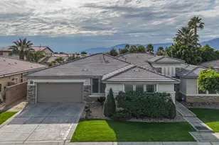 Live where convenience meets desert beauty in this spacious, single-level home located in the well-established gated Shadow Ranch community in North Indio. Shadow Ranch is a neighborhood of approximately 200 homes, featuring a small park and low HOA fees and special assessments in the property taxes. With 4 bedrooms, 3full bathrooms, and 2,749 square feet, this thoughtfully designed residence offers the ideal balance of comfort, functionality, and relaxed desert living.From the moment you arrive, the home impresses with manicured, lush green lawn landscaping and excellent curb appeal. Upon entry, a welcoming foyer with 12-foot ceilings sets the tone, creating an airy and inviting first impression.Enjoy southern exposure and spectacular mountain views from your private covered patio--perfect for morning coffee, sunset gatherings, or quiet evenings under the desert sky. Just blocks away, you'll find shopping, scenic hiking trails, and The Lights at Indio Public Golf Course, making it easy to embrace an active, outdoor lifestyle.Inside, the open, hosting-friendly floor plan flows beautifully and is ideal for both everyday living and entertaining. Highlights include a formal dining room, a generous bonus room/den, and a welcoming living area anchored by a tiled fireplace. The bright breakfast nook opens to the kitchen, which offers ample cabinetry, a five-burner cooktop, and all appliances--perfect for casual meals and weekend hosting.The floor plan is especially well designed for privacy, with excellent separation between bedrooms. One bedroom is located near the front entrance ideal for guests or a home office. Two additional bedrooms are situated near the bonus room/den, offering flexibility for family, guests, or multi-purpose living.The spacious primary suite is a true retreat, featuring a private patio entrance, a large walk-in closet, dual vanities, a soaking tub, and a separate shower. The private backyard is designed for easy enjoyment with a covered patio, fenced dog run, and plenty of space to relax or entertain. Additional conveniences include a laundry area, a two-car Enjoy single-level living with mountain views and a convenient North Indio location--set within the gated Shadow Ranch community.