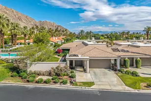 Nestled on the edge of #11 tee boxes of the Arnold Palmer private course with stunning mountain views, this pristine popular Legends 30, 3-bedroom, 4-bathroom home combines elegance, comfort, and convenience. Inside, you'll find a light-filled open floor plan featuring fresh paint, stylish vinyl plank flooring, and newer countertops that bring a modern touch to the kitchen and bathrooms. The kitchen also boasts all new Thermador appliances, perfect for everyday living or entertaining guests.Each of the three spacious bedrooms includes its own private bathroom, offering a sense of luxury and privacy throughout. Step outside on your over-sized patio to enjoy the peaceful golf course backdrop, or take a short stroll next door to the semi private pool and spa. Newer windows and patio doors, 2 newer hot water tanks, new split A/C in garage, newer garage doors, new bar fridge and more! Expansive side yard if you want to add a pool. This home is a rare opportunity to live in a beautifully updated space with unbeatable views and location. HOA includes all landscaping, internet, cable, security, trash, painting, roof and earthquake insurance. Come and see for yourself.