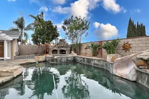 Great location and neighborhood! Opportunity to polish this versatile 4 bedroom, 2 bath pool home! Very open floorpaln to the backyard patio areas and pool - slider doors from back and french doors off eating area. The floors throughout are beautifully done wood style floors with professionally added brick accents on some walls and door frames. Custom brick fireplace in dining area off kitchen. Many designer additions of crown moulding, baseboards, wainscot, every inch of the home has been touched with detail in mind. Bedrooms are spacious - one bedroom with double doors makes an excellent office area. The primary bedroom has its own private bath with deep tub added. The floorplan has a lot of potential. If entertaining is desired, the 7280 sqft lot is designed with this in mind. Large patio space, dark bottom pool with waterfall, slide, swim up stools. Large built in BBQ and covered bar area. Custom designed fireplace and many sitting nooks. The house and the yard have a lot of potential and this is an opportunity to buy it as is and make it your own. This is a gem!! More pictures coming soon!!!!!