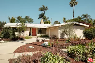 The Fox Residence, Paul L. Williamson (1957). An extraordinarily well preserved mid-century modern post and beam home situated on a more than 11,000 square foot lot in Long Beach's Los Cerritos neighborhood. Offered for only the second time since built, its current owners have taken great care to respect the home's originality wherever updates have been made. At the street facing, a bright white rock roof and trellised entryway with red door give clues of what lies beyond. Inside, a large double sided stone fireplace lands at the apex of a beamed ceiling, providing delineation for what is an otherwise vast open plan. Obscure glass panels on each side allow light to pass between these rooms throughout the day. Honey colored Birch paneling and built-ins enrich a skylit living space, which features a wall of glass and sliding doors that face out to the expansive rear yard and pool. The roofline extends to shelter a raised patio that provides for areas of shaded dining and lounging. An island counter with wet bar and wine fridge separates the living area from the kitchen and its adjacent dining area. A sensitive remodel of the kitchen retained original cabinetry with reeded glass doors and brought in Heath tile, quartz countertops, and Bosch & Jenn-Air appliances. The spacious open plan family room/dining area features beamed ceilings and built-in display cabinets. With the adjacent 3/4 bath and hallway wardrobe closet, this more formal dining room would function well as a 4th bedroom with just the addition of one interior wall. A hallway with additional storage buffers the north bedroom wing from the rest of the home. The primary bedroom features a dramatic southest facing corner window detail that frames a view overlooking the pool and yard. The more than quarter acre lot appears even larger than its measure- with a sprawling lawn, pool, patio, and pool house all well placed on the property. Privacy hedging and the canopy of a majestic Pepper Tree make for a parklike setting. The detached pool house/studio measures approximately 200sf, and has not been included in advertised size of home. Located amongst the estate properties of the Los Cerritos/Virginia Country Club area- with its tree lined streets, historic homes, excellent school district, and an incredibly quiet, peaceful atmosphere.