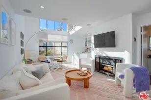 Light filled Brentwood penthouse - 1 bedroom, 1 bathroom plus versatile bonus room. Soaring ceilings with 2-story windows allow sunlight to stream into the open-plan living & dining room areas. Enjoy cozy evenings by the fireplace, with pendant lighting casting a warm ambiance. The stunning gourmet kitchen impresses with sleek stainless steel appliances, gleaming marble countertops and a cook's island that provides plenty of prep-work area or serving space. A serene second-floor primary bedroom is the perfect place to unwind and recharge. Sliding glass doors open onto a private balcony/patio with expansive views of the mountains and Getty Center. The bonus room just off the primary bedroom is perfect to use as an office, reading room or workout area and includes a 2nd closet. The full bathroom has a vanity plus tub/shower on one side and walk-in closet on the other. Residents enjoy amenities such as gated parking, controlled access, a pool, a spa, and doorman services from 4:00 pm to 12:00 am daily. This prime Brentwood location is just minutes away from San Vicente, offering easy access to local markets, shops, and restaurants.