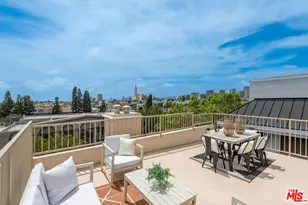 Experience penthouse living at its finest in this rare, front-facing northwest corner residence that seamlessly blends elegant interiors with exceptional outdoor living. Bathed in natural light and perched above a beautiful tree-lined street, this stunning single-level home features four separate outdoor spaces, including an expansive private rooftop deck of approximately 300 square feet perfect for entertaining, unwinding, and soaking in breathtaking city and treetop views with spectacular sunsets as your daily backdrop. The open-concept living and dining area is designed for both comfort and entertaining, featuring rich crown moldings, a cozy fireplace, and two front-facing balconies that invite the outdoors in. The chef's kitchen is a culinary dream, outfitted with stainless steel appliances, double ovens, and expansive counter space including a casual dining bar. The generously sized primary suite is a true retreat, complete with its own fireplace, private balcony, large walk-in closet, and a luxurious, spa-inspired bathroom featuring stone floors, dual sinks, a soaking tub, and a separate glass-enclosed shower. Two additional spacious bedrooms offer ample closet space, each thoughtfully outfitted for optimal storage. A stylish guest bathroom and an in-unit laundry area complete this refined, thoughtfully designed home. Located in a desirable, newer courtyard-style building a gated parking garage with guest parking, and the peace of mind that comes with secure, boutique living. Positioned in an unbeatable location just moments from UCLA, Westwood Village, Century City, and Beverly Hills, and within the sought-after Westwood Charter School district. This a turnkey opportunity to enjoy luxury penthouse living in the heart of the Westside.