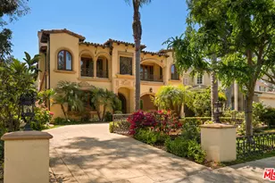 Landlord is offering 2 weeks free on a 12 month lease. Step into timeless elegance at this stunning Mediterranean estate in the heart of Brentwood. Tucked behind lush hedges and framed by mature palms, this grand residence offers unparalleled privacy and sophistication. Enter through a dramatic double-height foyer with a sweeping wrought iron staircase, domed ceiling, and ornate chandelier. The spacious formal living and dining rooms are designed for entertaining, accented by arched entryways, rich wood detailing, and natural stone floors. An expansive chef's kitchen anchors the home, featuring a massive marble island, top-of-the-line Viking appliances, walk-in pantry, and a breakfast nook that overlooks the backyard. The residence offers multiple family and entertaining spaces, including a warm family room with a fireplace, custom cabinetry, and seamless indoor-outdoor flow through French doors. A wood-paneled office with built-ins provides the ideal work-from-home setup. Upstairs, the luxurious primary suite is a true retreat - complete with a cozy sitting area, fireplace, and French doors that open to a private balcony. The spa-like primary bath boasts dual vanities, a soaking tub surrounded by arched windows, and two oversized walk-in closets with custom storage. Additional bedrooms are generously sized and beautifully appointed, each with en-suite bathrooms. Step outside to your own private oasis - complete with a sparkling pool, elevated spa, outdoor fireplace, and multiple lounge areas surrounded by vibrant landscaping. This tranquil backyard is ideal for both intimate gatherings and large-scale entertaining. Located moments from Brentwood's best shops, dining, and schools, this exquisite home combines Old World charm with modern comforts in one of LA's most desirable neighborhoods.