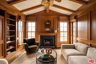 This Hollywood Hills compound is a private oasis with 360 degree views of Los Angeles, multiple outdoor living areas, and a true sense of charm and character throughout. Set on a rare, oversized lot framed by tall privacy hedges, the multi-level 4-bedroom (one currently used as an office) residence offers a warm and inviting layout with three fireplaces, wood-beamed ceilings, and French doors and windows that capture stunning sunrise and sunsets from every angle. The upper-level living room opens to a breezy view deck, while the sun-filled country-style kitchen features a cozy breakfast nook and easy access to outdoor dining patios. The primary suite is tucked privately upstairs, complete with sweeping ocean, city, and canyon views and its own fireplace. Outside, you'll find endless spaces to relax or entertain: a full-size pool with surrounding lounge areas, a wood-burning outdoor fireplace, a speakeasy pub under the house, a separate artist's studio, a bocce ball court, ping pong area, and multiple brick patios and garden pathways. Located minutes from Lake Hollywood, Griffith Park trails, Beachwood and Franklin Villages, and a short drive to the major studios, downtown, and Beverly Hills this one-of-a-kind hideaway blends timeless character with laid-back California living.