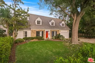 Situated in the highly coveted Brentwood Flats, this beautiful home pairs authentic architectural details with modern flair for a fresh take on California living. Awash in natural light via expansive windows throughout, the main level flows from the foyer into the great room, formal dining room, kitchen and adjoining den, met with floor-to-ceiling glass French doors that open to the tranquil outdoor setting. Here, a large patio, pool, pergola-shaded dining area, and pool house with a full bath are embraced by tall hedges for unrivaled serenity and seclusion. The main home features three bedrooms, including the primary suite with a marble-clad bath, fireplace, private balcony, ample closet space, and high, vaulted ceilings. Set just moments from San Vicente's most sought-after dining and shopping yet a seeming world away, this Brentwood retreat is a true Westside gem.